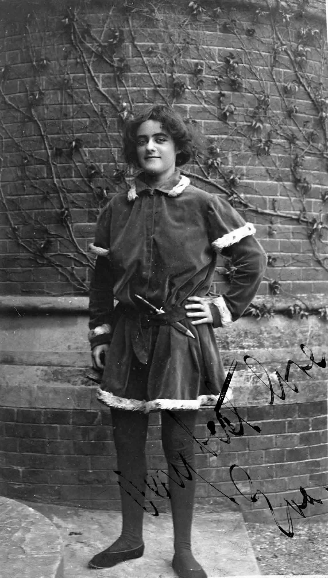 This picture shows Eva Onions (born 27/5/1901) at the Lyceum Theatre in Newport, South Wales. The picture appears to date about 1918 as the postage stamp was still at the 1/2 pence rate (it went up to a penny in 1919!) |