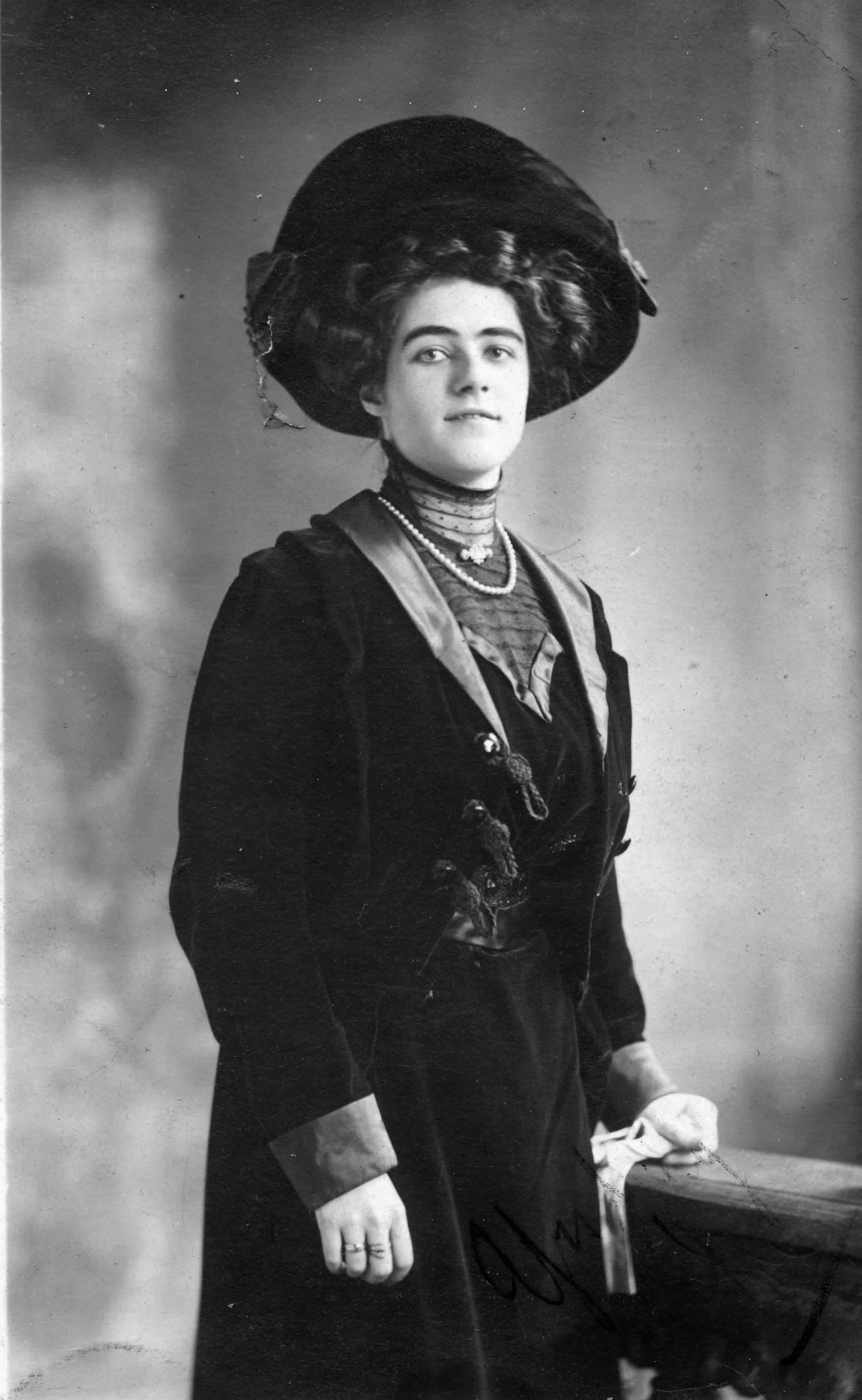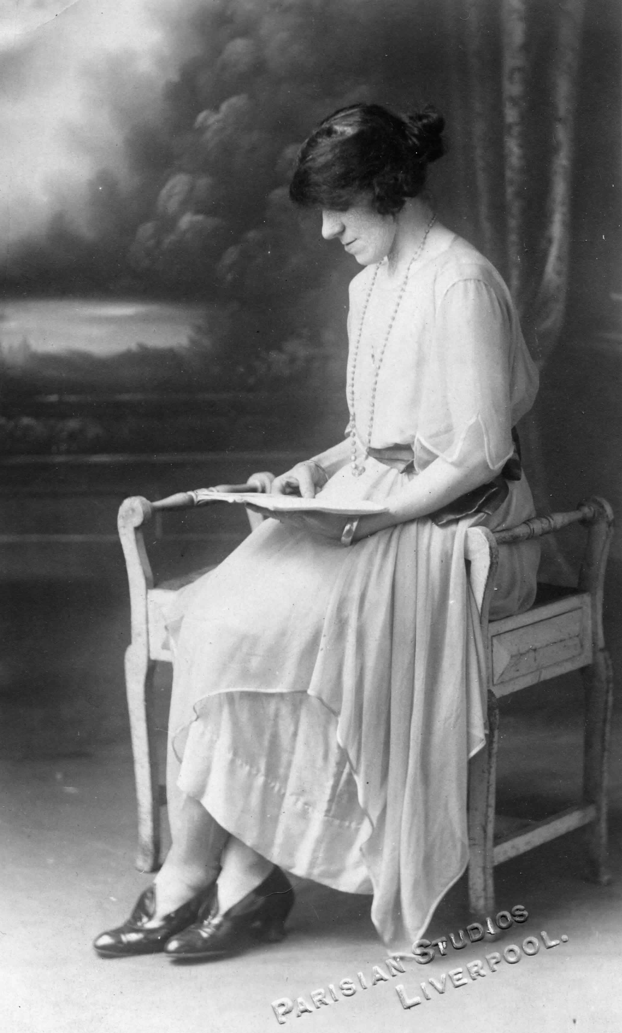 This picture of my Great Aunt Kit can be dated to around 1908/9 when the Parisian Studio operated from 27 Church Street in Liverpool. Kit worked in the fitting department of Vincent Williams a ladies outfitters in Chester for many years and never married. She died 30/12/1978 |