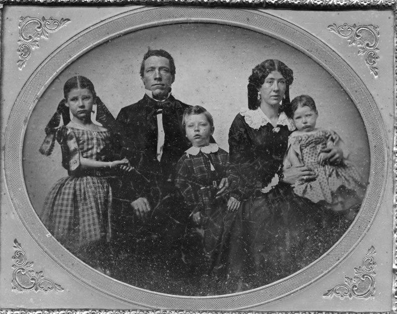 This is probably the oldest family photograph I have in my possession. Known as an Amborotype photograph it was produced on a glass plate and was common between about 1851 and the early 1860's. The family look reasonably well to do if not particularly cheerful!