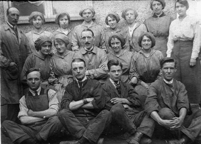 | This picture, also from about 1905, shows my Grandmother Nellie Holland (nee Onions) 2nd from the right on the back row of a group of fairly disconsolate looking female workers. The 1901 Census had her occupation as a dressmaker in Chester however there is no record for which employer she worked. | ||