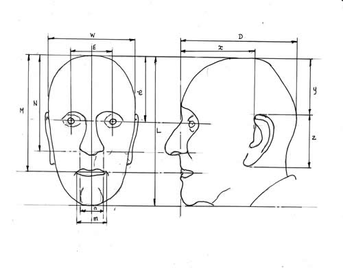 The following images are those of myself taken in 2020. The leading geometrical features are included in the accompanying sketch, and compared with those of the above two images, as best as can be achieved bearing in mind that heads are inclined.