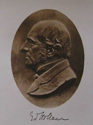 Frances Caldwell Holland was great-grandson of Sir Henry Holland of Knutsford, and first cousin of the above-mentioned Walter Holland. There are obvious similarities in the features of these two gentlemen, yet their nearest common ancestor is believed to be Thurston de Holland ap Robert ap Matthew de Holland of Upholland, i.e., twenty generations above. The Herbert Holland referred to by William R Holland was the son of Edward Holland MP, a profile of him appears in the Hollands of Mobberley book and is similar to that of his father shown below.