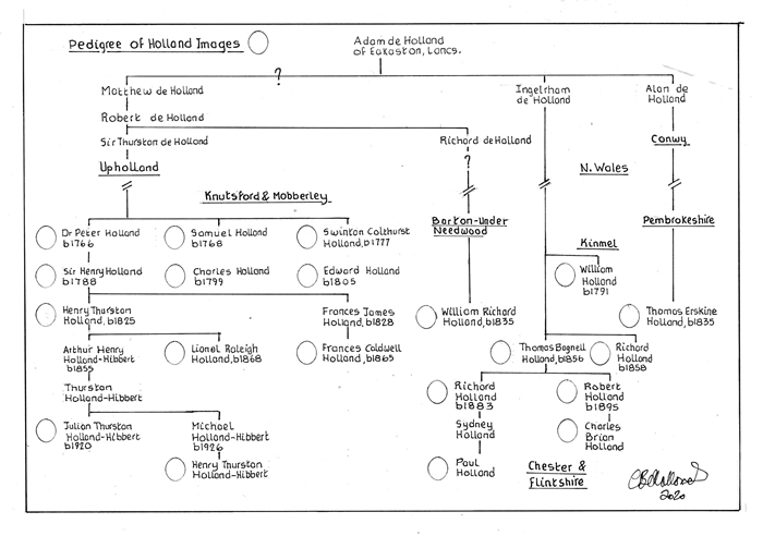 In addition to the images shown above, images of other members of the Holland family of Mobberley and Knutsford are shown below. The relationships between these individuals and those of other Holland branches where images exist are shown in the pedigree below: -